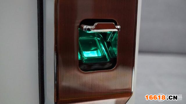 正泰之所以将钥匙孔隐藏的这么好,就是为了让你忘记钥匙的存在,改用其他更加方便的开锁方式,比如指纹。看到这通了电的指纹采集区域,是不是有种绿灯侠的感觉?