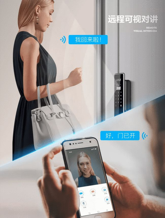 从行业现状来看,除了3D人脸识别锁之外,另一个发展比较迅速的产品就是视频锁。而KFZ智能锁发布另外一款K6009B,正是视频锁。