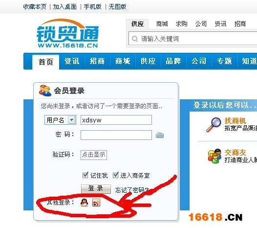 欲绑定的锁贸通登录会员用户名。