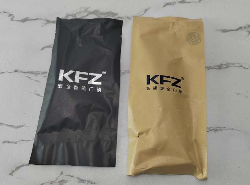 值得一提的是,K8007B包装内的各个零部件均有独立的纸盒小包装,虽然免去了传统智能锁包装中的聚乙烯等塑料减震泡沫,但小包装同样能起到很好的保护作用,且更环保。小包装上均印有KFZ LOGO,无形增强了品牌辨识度。