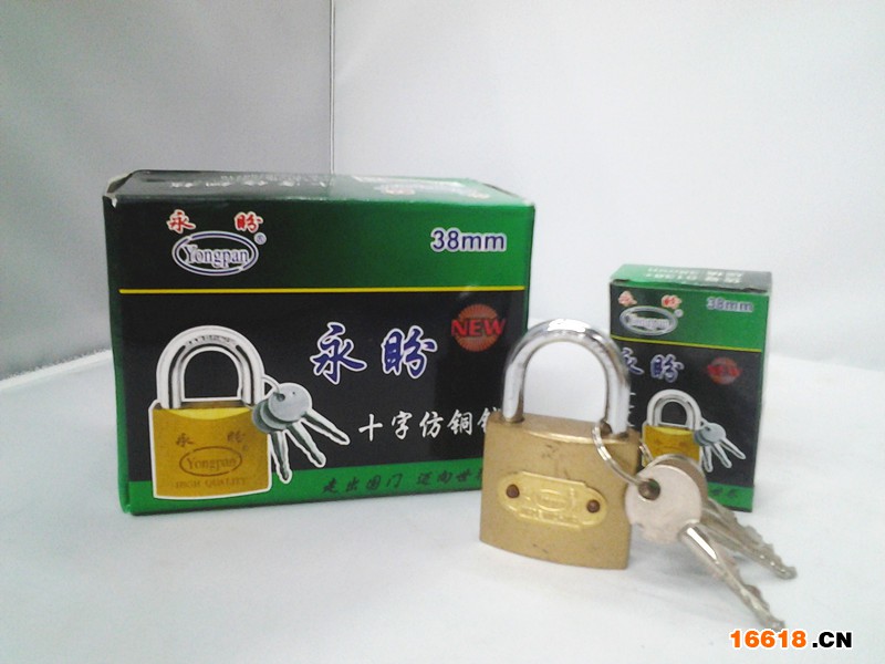 永盼防盗锁仿铜38mm十字直开挂锁宿舍大门柜子仓库门专用锁