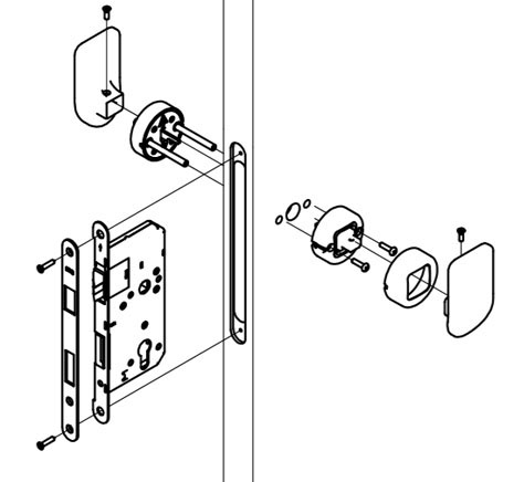 3. 在门框对应的位置上安装锁扣板(确认好开门的方向后,将扣板盒安装在扣板上),并使锁舌和方舌均能自由伸缩(注:锁扣板和锁体的中心线偏至8.5毫米)。